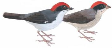 Adult and juvenile Antioquia Brush-Finch (Atlapetes blancae), painted by Robin Restall |